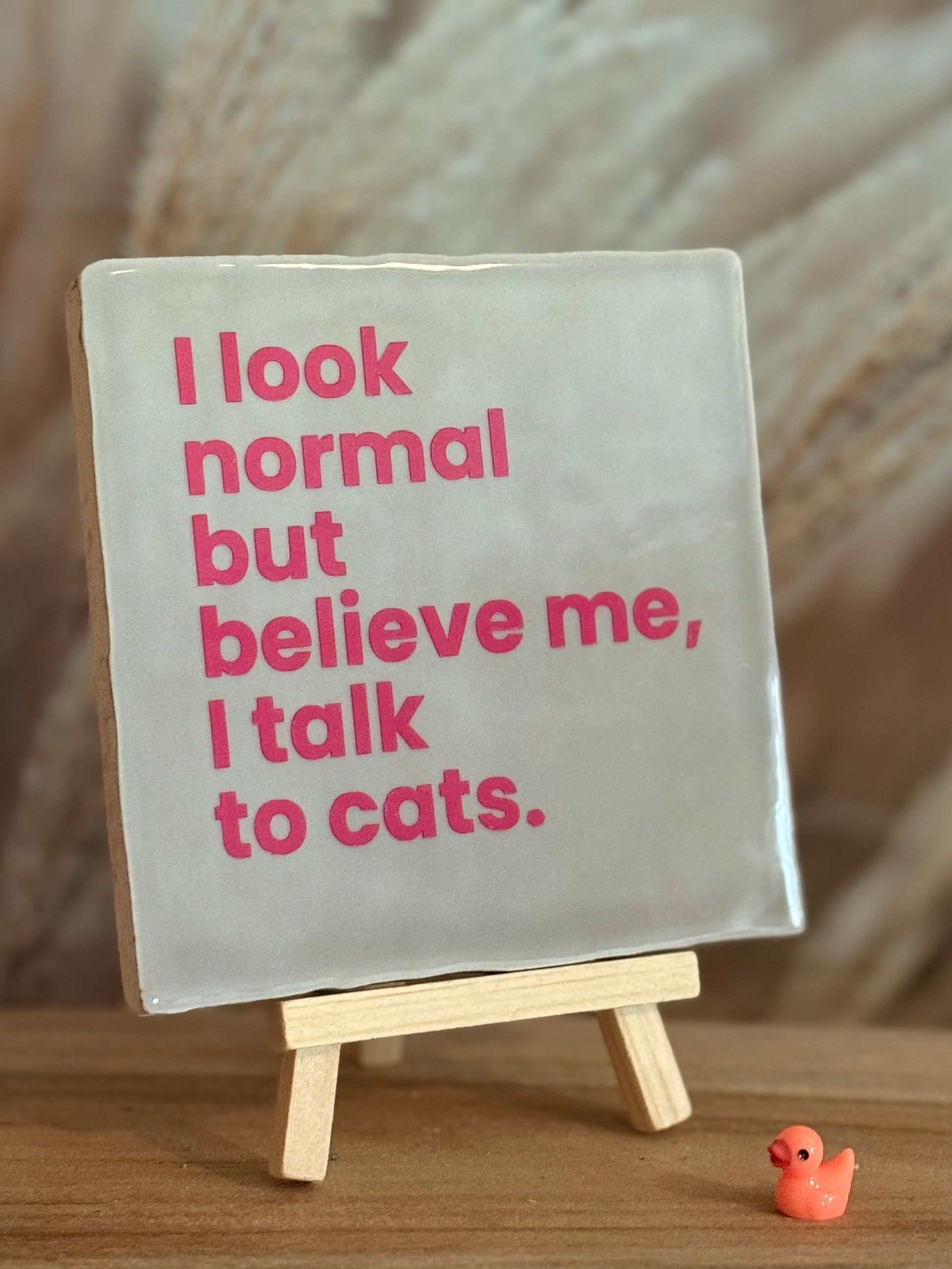 Mooi handgemaakt tegeltje met de tekst I look normal but believe me I talk to Cats.